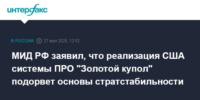 МИД РФ заявил, что реализация США системы ПРО "Золотой купол" подорвет основы стратстабильности