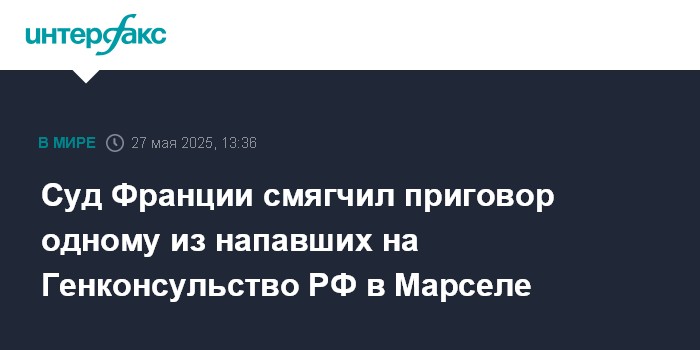 Суд Франции смягчил приговор одному из напавших на Генконсульство РФ в Марселе