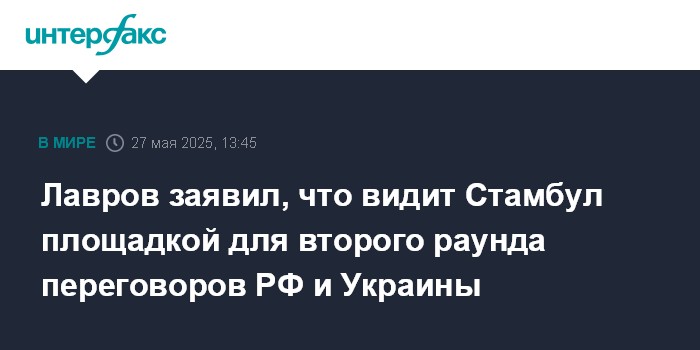 Москва. 27 мая. INTERFAX.RU - Глава МИД РФ Сергей Лавров заявил, что для проведения второго раунда российско-украинских переговоров вновь обратился бы к Турции.