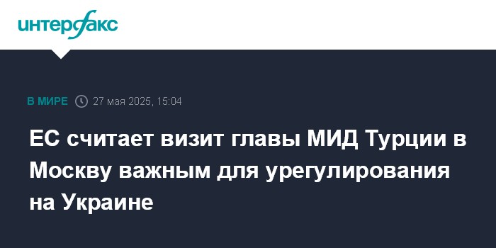 Москва. 27 мая. INTERFAX.RU - ЕС надеется, что визит в Москву главы МИД Турции Хакана Фидана станет одним из шагов, направленных на прекращение огня на Украине, заявила Анитта Хиппер, официальный представитель главы дипломатии Евросоюза Каи Каллас.