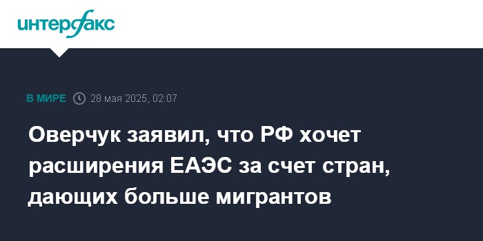 Оверчук заявил, что РФ хочет расширения ЕАЭС за счет стран, дающих больше мигрантов
