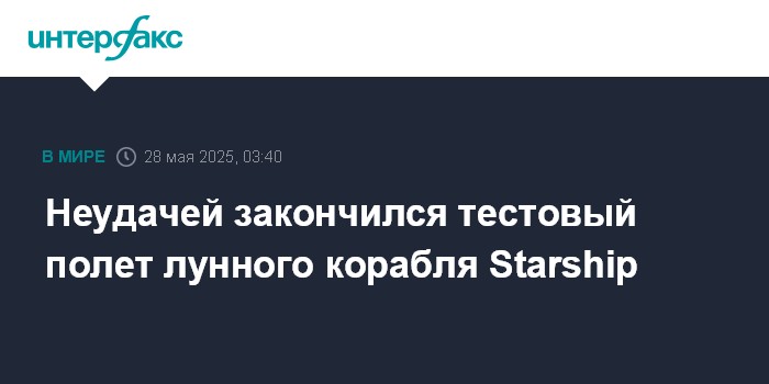 Москва. 28 мая. INTERFAX.RU - Очередной, девятый по счету, испытательный запуск создаваемой американской ракетной системы Starship для пилотируемых полетов на Луну и Марс, совершенный в среду по московскому времени, прошел неудачно, следует из сообщения компании-разработчика SpaceX.
