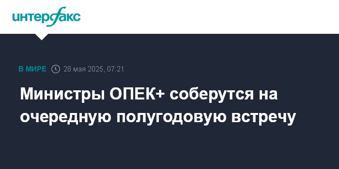 Москва. 28 мая. INTERFAX.RU - Министры 22 стран-участниц ОПЕК+ соберутся в среду на очередную полугодовую встречу.