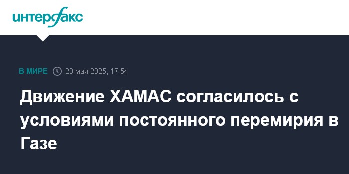 Москва. 28 мая. INTERFAX.RU - Палестинское движение ХАМАС достигло соглашения с представителем президента США на Ближнем Востоке Стивом Уиткоффом по условиям постоянного режима прекращения огня в секторе Газа, сообщает в среду The Jerusalem Post.