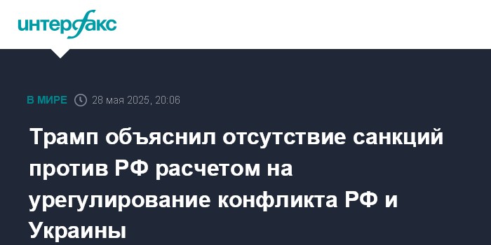 Москва. 28 мая. INTERFAX.RU - США пока не вводят санкции в отношении России, так как такие меры могут помешать быстрому урегулированию конфликта на Украине, заявил в среду президент Дональд Трамп.