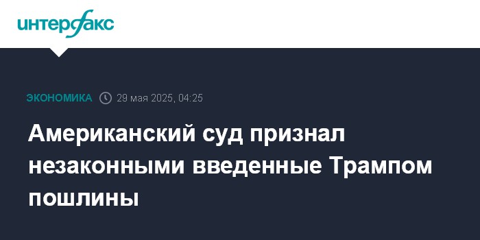 Москва. 29 мая. INTERFAX.RU - Введенные президентом США Дональдом Трампом глобальные тарифы были признаны незаконными и заблокированы федеральным торговым судом, сообщают американские СМИ.