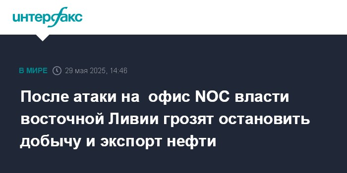 Москва. 29 мая. INTERFAX.RU - Власти восточной части Ливии пригрозили приостановить добычу и экспорт нефти после атаки боевиков, лояльных властям западной части страны, на штаб-квартиру государственной нефтекомпании National Oil Corp. (NOC) в Триполи.