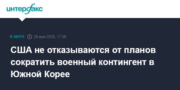 Москва. 29 мая. INTERFAX.RU - Вашингтон по-прежнему считает возможным вывод части американских военных, развернутых в Южной Корее, сообщает в четверг Associated Press со ссылкой на двух сотрудников Пентагона, сопровождающих министра обороны США Пита Хегсета в Сингапур на форум "Диалог Шангри-Ла".