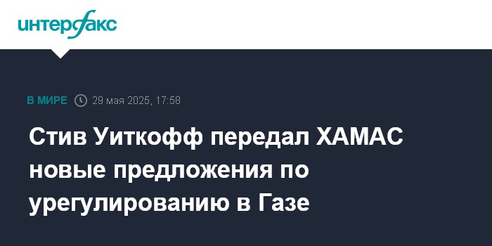 Стив Уиткофф передал ХАМАС новые предложения по урегулированию в Газе