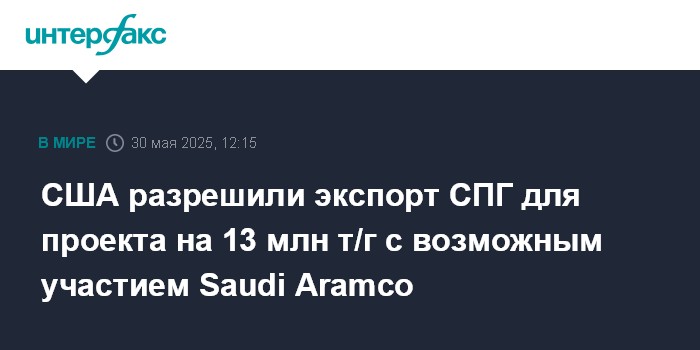 США разрешили экспорт СПГ для проекта на 13 млн т/г с возможным участием Saudi Aramco