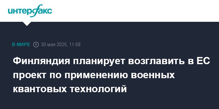 Москва. 30 мая. INTERFAX.RU - Финляндия предложила Евросоюзу проект, связанный с военными квантовыми технологиями (QUEST), сообщило Минобороны страны.