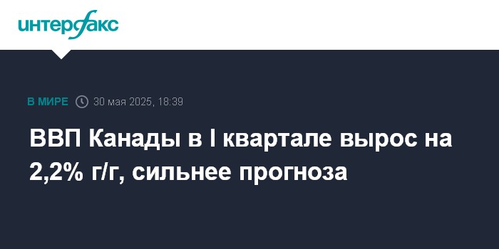 Москва. 30 мая. INTERFAX.RU - Экономика Канады в первом квартале 2025 года выросла на 2,2% в годовом выражении, сообщило статуправление страны.