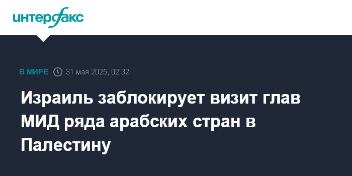Москва. 31 мая. INTERFAX.RU - Израиль решил помешать делегации министров иностранных дел стран Ближнего Востока совершить визит на Западный берег реки Иордан в воскресенье, сообщают местные СМИ.