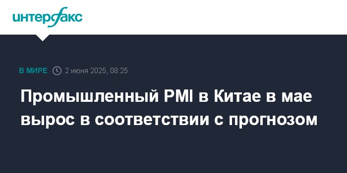 Москва. 2 июня. INTERFAX.RU - Индекс менеджеров по закупкам (PMI) в перерабатывающей промышленности Китая в мае повысился до 49,5 пункта по сравнению с 49 пунктами месяцем ранее, сообщило Государственное статистическое управление страны.