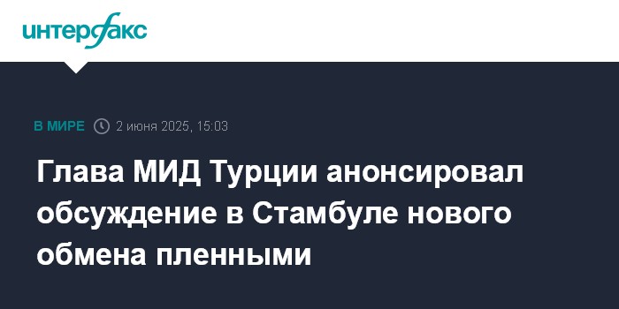 Москва. 2 июня. INTERFAX.RU - На российско-украинских переговорах в Стамбуле будет обсуждаться обмен гражданскими и военнопленными, сообщил, открывая встречу делегаций, глава МИД Турции Хакан Фидан.