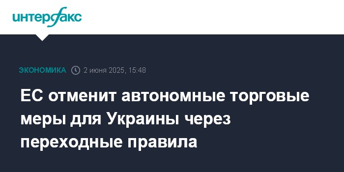 Москва. 2 июня. INTERFAX.RU - Еврокомиссия обеспечивает переходный период от завершающихся автономных торговых мер (АТМ) Евросоюза для Украины к ранее существовавшим тарифным условиям для Киева, сообщил пресс-секретарь ЕК Олоф Жилл.