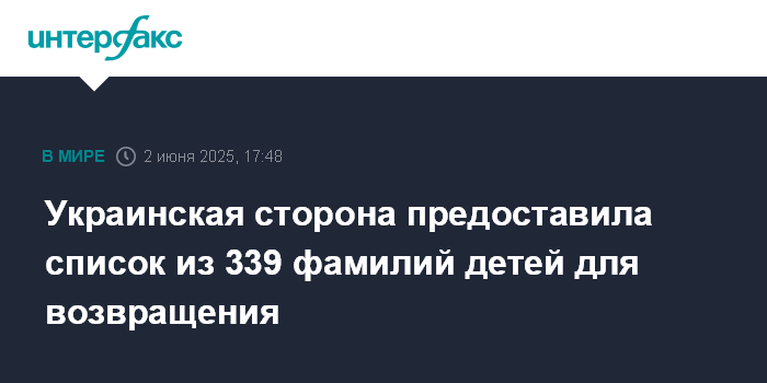 Украинская сторона предоставила список из 339 фамилий детей для возвращения