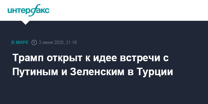 Москва. 2 июня. INTERFAX.RU - Президент США Дональд Трамп по-прежнему не против трехсторонней встречи с президентами РФ и Украины Владимиром Путиным и Владимиром Зеленским в Турции, сообщила представитель Белого дома Кэролайн Левитт.