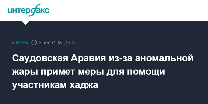 Москва. 2 июня. INTERFAX.RU - Власти Саудовской Аравии задействуют около 250 тыс. сотрудников для помощи паломникам на фоне чрезвычайно жаркой погоды, ожидаемой во время хаджа на этой неделе, сообщает в понедельник газета Gulf News.