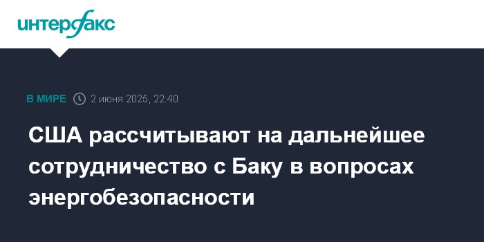 США рассчитывают на дальнейшее сотрудничество с Баку в вопросах энергобезопасности