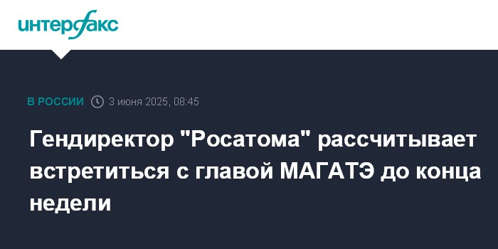 Москва. 3 июня. INTERFAX.RU - Гендиректор "Росатома" Алексей Лихачев рассчитывает встретиться с главой МАГАТЭ Рафаэлем Гросси в конце этой недели, вероятно, Калининграде.