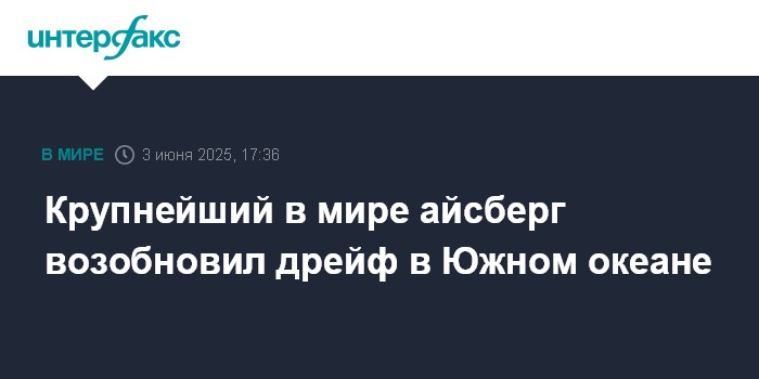 Крупнейший в мире айсберг возобновил дрейф в Южном океане