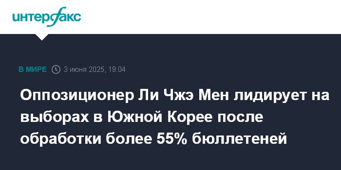 Оппозиционер Ли Чжэ Мен лидирует на выборах в Южной Корее после обработки более 55% бюллетеней
