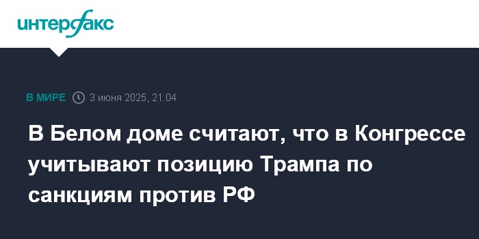 Москва. 3 июня. INTERFAX.RU - Американские конгрессмены принимают во внимание позицию президента США Дональда Трампа по вопросу о дополнительных санкциях против РФ, заявили во вторник в Белом доме.