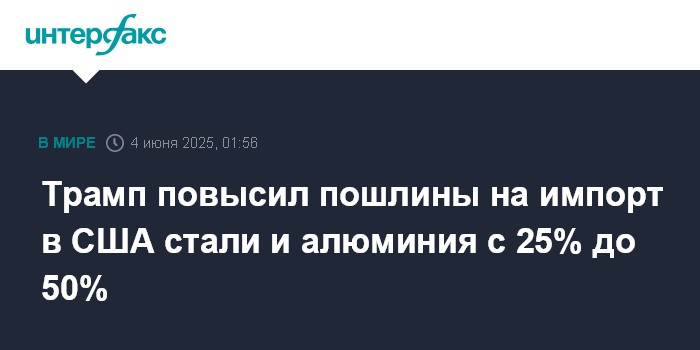 Уточняется, что пошлины в 50% вступят в силу в течение 4 июня по вашингтонскому времени.
