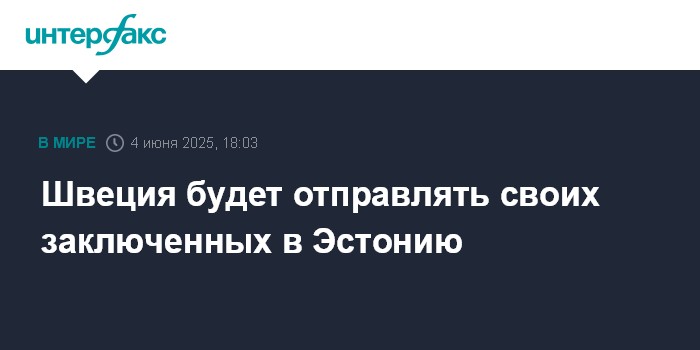 Москва. 4 июня. INTERFAX.RU - Швеция достигла соглашения с Эстонией об аренде тюремных мест для заключенных, сообщило в среду телевидение Швеции SVT.