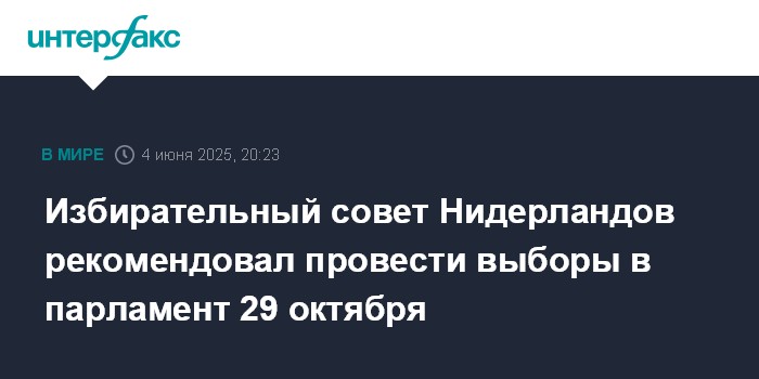 Москва. 4 июня. INTERFAX.RU - Избирательный совет Нидерландов считает 29 октября 2025 года первой реалистичной датой для проведения парламентских выборов в стране, сообщает NL Times.