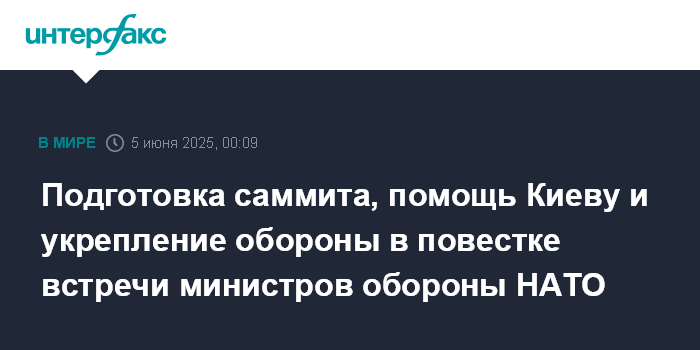 "Министры обороны стран НАТО встречаются в Брюсселе, чтобы заложить основу для саммита в Гааге, а также принять ключевые решения по усилению наших сдерживания и обороны. Мы также обсудим нашу постоянную поддержку Украины и насущную необходимость мира", - заявил Рютте накануне на пресс-конференции.