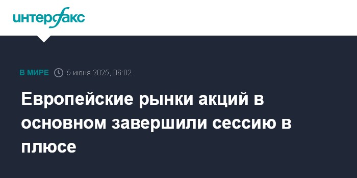 Москва. 5 июня. INTERFAX.RU - Фондовые индексы крупнейших стран Западной Европы в основном завершили торги в среду в плюсе, исключением стал испанский индикатор.