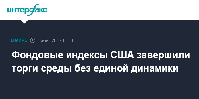 Москва. 5 июня. INTERFAX.RU - Американские фондовые индексы завершили торги в среду без единой динамики.
