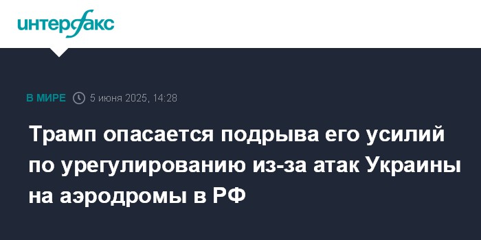Трамп опасается подрыва его усилий по урегулированию из-за атак Украины на аэродромы в РФ