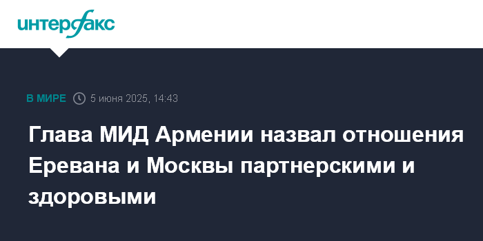 Глава МИД Армении назвал отношения Еревана и Москвы партнерскими и здоровыми