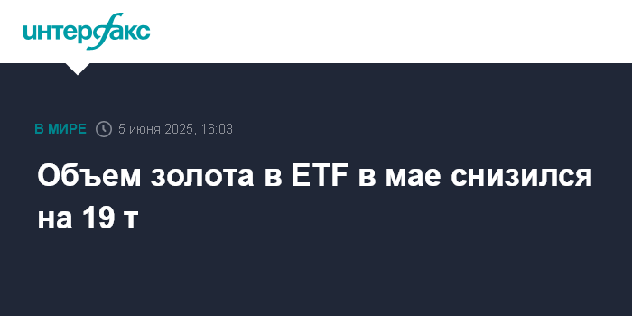 Москва. 5 июня. INTERFAX.RU - Мировые ETF (exchange traded funds - биржевые инвестиционные фонды) в мае 2025 года потеряли $1,8 млрд, что соответствует 19,1 тонны золота, подсчитал World Gold Council (WGC).