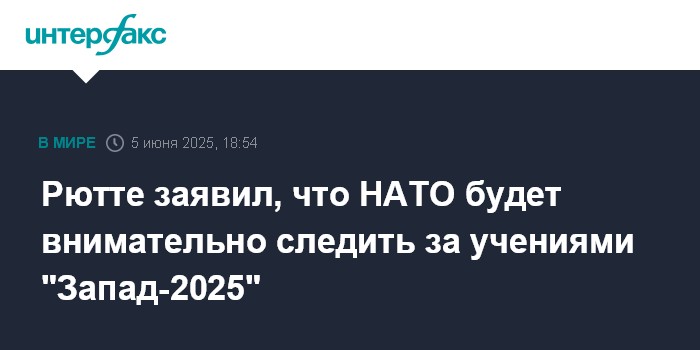 Москва. 5 июня. INTERFAX.RU - В НАТО следят за военной активностью РФ и готовы наблюдать за запланированными на сентябрь в Белоруссии учениями "Запад-2025", заявил в четверг генсек альянса Марк Рютте.