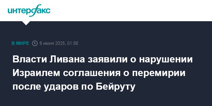 Москва. 6 июня. INTERFAX.RU - Власти Ливана назвали вопиющим нарушением режима прекращения огня нанесенные в ночь на пятницу удары израильской авиации по южному пригороду Бейрута, сообщает The Times of Israel.