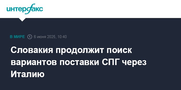 Словакия продолжит поиск вариантов поставки СПГ через Италию