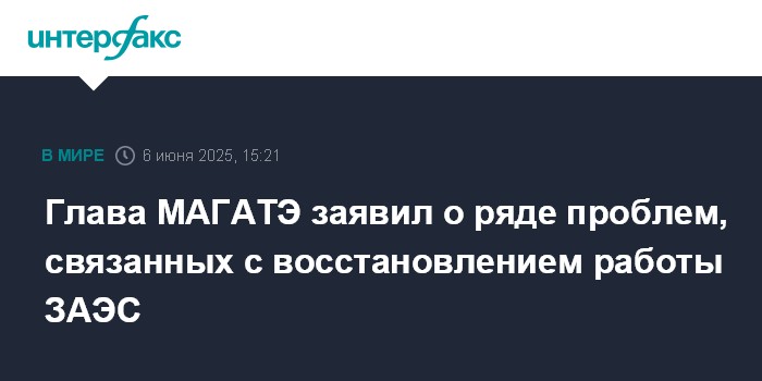 Москва. 6 июня. INTERFAX.RU - Гендиректор Международного агентства по атомной энергии (МАГАТЭ) Рафаэль Гросси заявил о ряде проблем, связанных с восстановлением нормальной работы ЗАЭС.