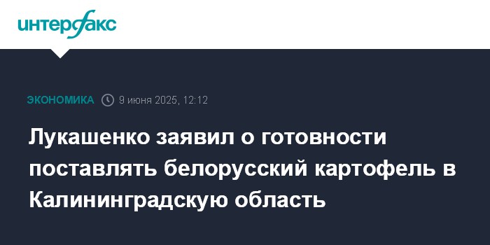 Москва. 9 июня. INTERFAX.RU - Белоруссия готова поставлять в Калининградскую область необходимое продовольствие, включая картофель, заявил президент Александр Лукашенко на встрече с губернатором Калининградской области Алексеем Беспрозванных. Об этом сообщает пресс-служба Лукашенко.