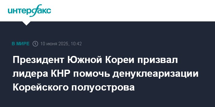 Москва. 10 июня. INTERFAX.RU - Новый президент Южной Кореи Ли Чжэ Мен в первом телефонном разговоре с председателем КНР Си Цзиньпином призвал его помочь добиться денуклеаризации Корейского полуострова, сообщает во вторник агентство "Ренхап".