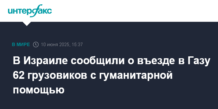 В Израиле сообщили о въезде в Газу 62 грузовиков с гуманитарной помощью