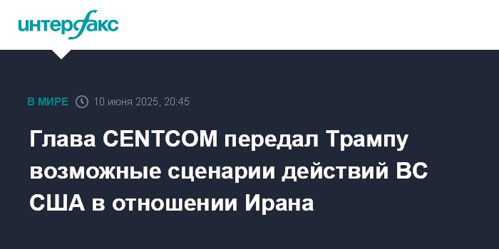 Глава CENTCOM передал Трампу возможные сценарии действий ВС США в отношении Ирана