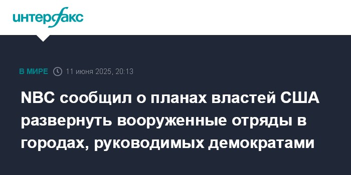 NBC сообщил о планах властей США развернуть вооруженные отряды в городах, руководимых демократами