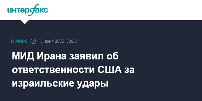 Москва. 13 июня. INTERFAX.RU - МИД Ирана считает, что ответственность за израильские удары по иранским ядерным объектам лежит в том числе на Соединенных Штатах.