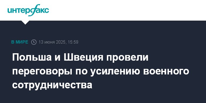 Москва. 13 июня. INTERFAX.RU - Польша и Швеция провели переговоры по усилению военного сотрудничества в рамках НАТО и ЕС, сообщила в пятницу пресс-служба польского Минобороны.