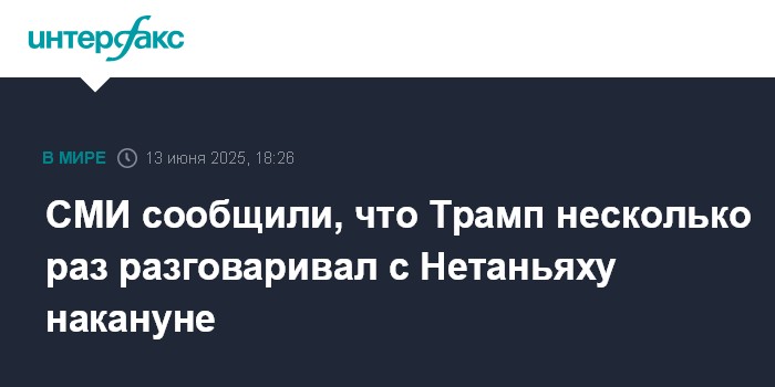"Трамп в четверг говорил неоднократно с Нетаньяху, в том числе перед началом беспрецедентных ударов по Ирану, заявил источник, знакомый с дискуссиями", - передает телеканал.