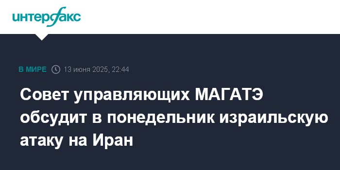 Совет управляющих МАГАТЭ обсудит в понедельник израильскую атаку на Иран